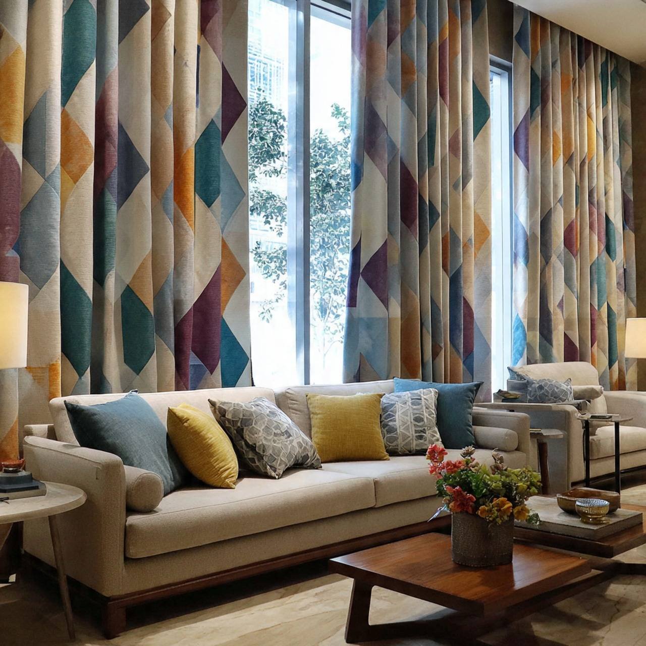 The Edge of Design: Geometric curtains are all about bringing order and modern flair to your home. They use repeating shapes and crisp lines to create a strong visual impact. This style is perfect for anyone wanting a contemporary, architecturally inspired look.