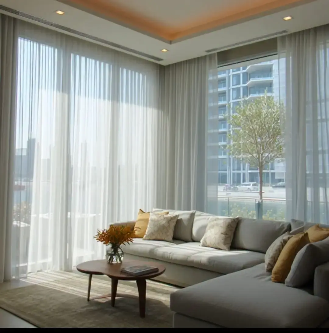 The sheer material scatters harsh sunlight across the room. It creates a soft, glowing ambiance in your living space. This helps reduce eye strain and glare on screens.