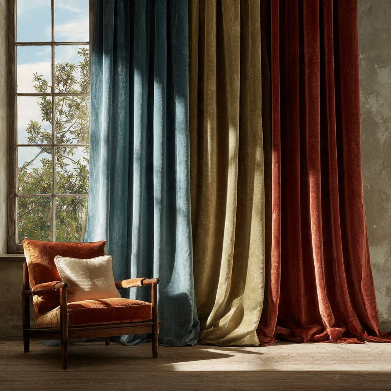 The Ultimate Luxury: Velvet curtains are the gold standard for adding drama and warmth to a room. The thick, plush pile absorbs light and sound. This creates a cozy, private atmosphere that feels incredibly high-end.